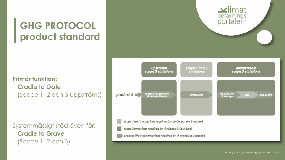 Vi arbetar enligt GHG Protocol Product Standard och genom en årslicens får er verksamhet tillgång till ett inrapporteringsverktyg med hundratals påverkansfaktorer inom scope 1, 2 och 3. Självklart finns möjlighet att använda beräkningen av företagets påverkan till att bryta ner till artikelunik nivå. Resultatet motsvarar det som brukar kallas PCF, Product Carbon Footprint.